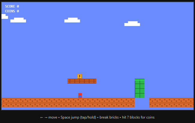 ← → move • Space jump (tap/hold) • break bricks • hit ? blocks for coins